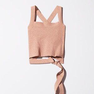 This top is made with a shimmery Italian knit that skims the body and keeps its shape. The criss-cross straps can be tied at the front any which way you like