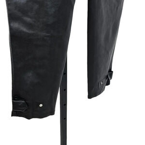 These are high-rise cargo pants with adjustable ankle tabs and low-profile patch pockets. They're made with our premium vegan leather from Japan crafted for superior shape retention, easy care and an authentic leather look.