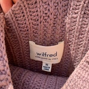 A Wilfred Classic. this is the newer, thicker version of the sweater. In Great condition and NOT SHRUNK (woo!) This is an absolutely gorgeous sweater and a staple for any closet. I'm only selling because I have it in a bunch of other colours and I don't wear this one as often. It's a muted magenta colour. Size is extra small but it is meant to fit oversized. From top of neck to base is 28”, from armpit to base is 14” (taken from lying flat)