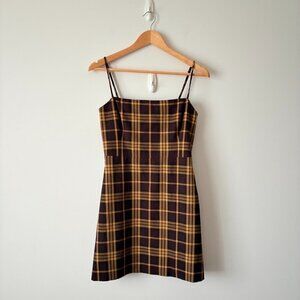 Aritzia Wilfred New Classic Isabelle Check Plaid Mini Dress Black Yellow Size 8