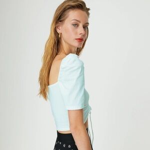 Aritzia Wilfred Nissa Puff Sleeve Crop Top Light Blue Ruched Front Sz S