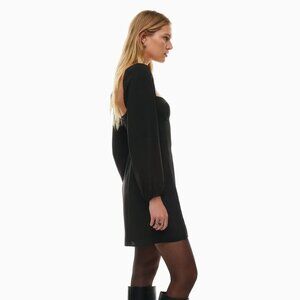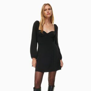 Aritzia Wilfred Novella Dress- Satin Puff-Sleeve Mini Dress-Black- Size 0