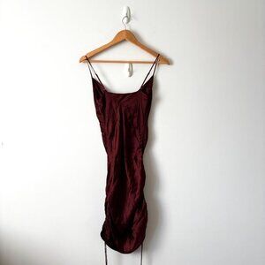 Aritzia Wilfred Only Ruched Slip Satin Dress Burgundy Maroon Red Size XS