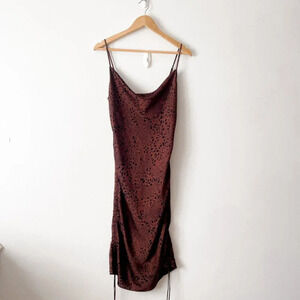 Aritzia Wilfred Only Ruched Slip Satin Dress Leopard Animal Print Size Medium