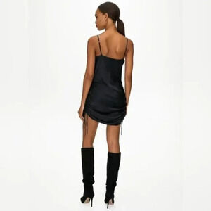 Aritzia Wilfred Only Ruched Slip Satin Dress Midi Mini Black Size Small