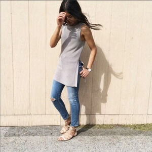 Aritzia Wilfred Palmier Side Split Knit Sleeveless Sweater Oak White Size Small