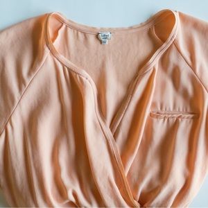 Aritzia Wilfred Peach Nude Peplum Surplice Faux Wrap Top Deep V Chiffon Size M