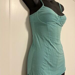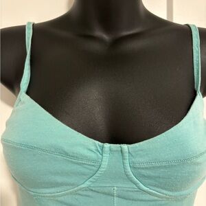 Aritzia Wilfred Pima Cotton Ocean Blue Teal Spaghetti Strap Tank Top Size Small