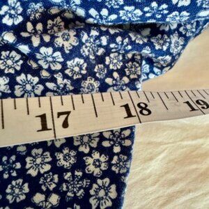 Wilfred "Polly" blue with small white daisy print midi long sleeved dress, size 10 from Aritzia. 100% cotton, ruching at back, princess shoulders. sweetheart neckline. Bust measures 18 inches laying flat, waist 15.25 inches flat, hips 24 inches flat, length from shoulder to hem is about 44 inches. Cat friendly, nonsmoking home.
