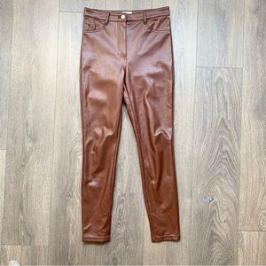 Aritzia Wilfred Rebel Pants Brown Faux Vegan Leather High rise Waist Size 2