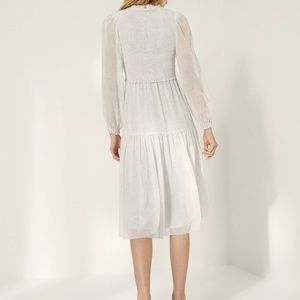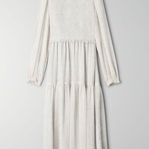 Aritzia Wilfred Rosalyn Midi Dress Smocked Chiffon Birch / Beige
