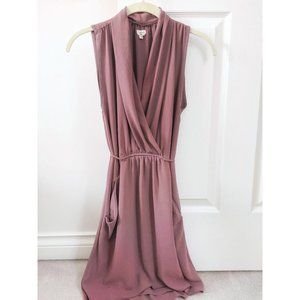 Faux-wrap mini dress with pockets and self-tie detail at the waist. It's made with a Japanese fabric that drapes nicely.