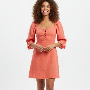 Aritzia Wilfred Stanza Mini Dress Linen Puff Sleeve Coral Pink Corset Size XXS