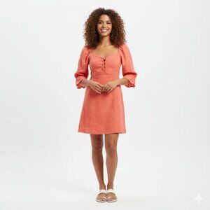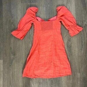 Aritzia Wilfred Stanza Mini Dress Linen Puff Sleeve Coral Pink Corset Size XXS