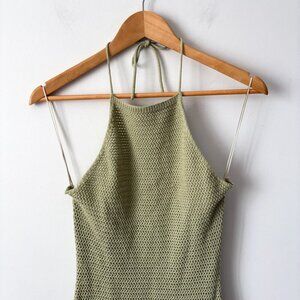 Aritzia Wilfred Sunset Knit Halter Dress Pastel Sage Green Size XS