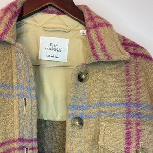 Aritzia Wilfred Tan Blue Pink Plaid Shirt Jacket in XS (oversized)