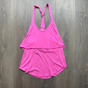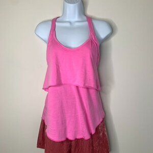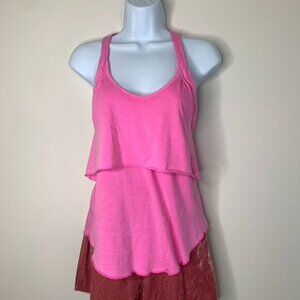 Aritzia Wilfred Tank Top Pink Cotton Knotted tie Racerback tiered ruffle Size XS