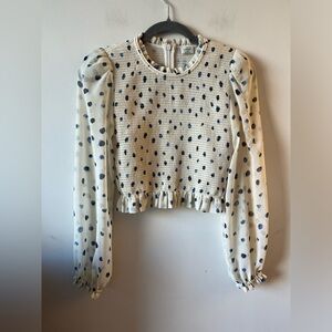 Aritzia Wilfred Tempest Blouse Smocked, dot-print prairie blouse Size XS