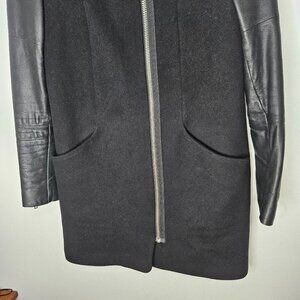Aritzia Wilfred The Cocoon Wool Cashmere Coat XS leather Sleeves Zipper Front