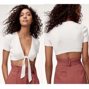 Aritzia Wilfred Tie Front Crop Top - red