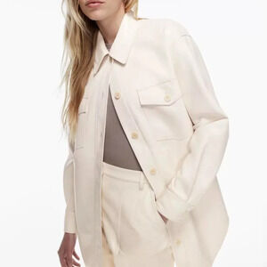 Aritzia Wilfred Vegan Leather Ganna Shirt Jacket Shacket Birch White Size Medium