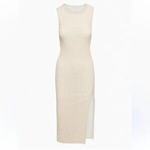 Aritzia Wilfred Verona Gingham Sleeveless Seersucker Midi Beige Size Large