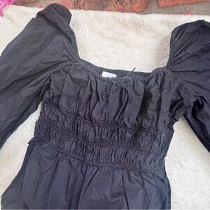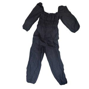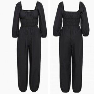 Aritzia Wilfred Waters Poplin Cotton Smocked Jumpsuit Boho Lightweight Black M