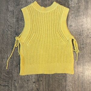 Chic yellow knit tank by Wilfred. Features sleeveless design with side ties. Ideal for casual wear. 55% Linen. 45% Cotton. NWOT.