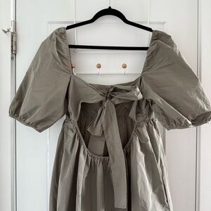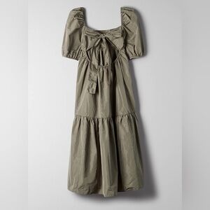 Aritzia Wilfred gray green puff sleeve Serenade midi dress - size Medium (M)