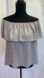 Beautiful ruffled frill collar to be worn off the shoulder. Colour is called lilac fog. The model stock photo is for style reference only.