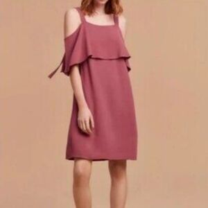 Aritzia Wilfred size medium rose colored midi dress ellipse cold shoulder