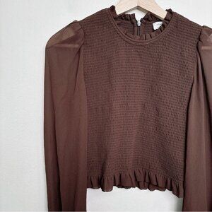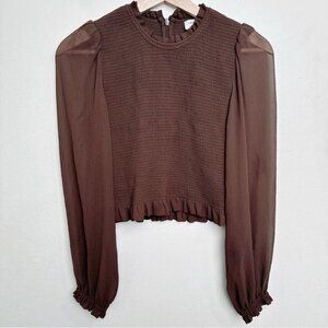 Aritzia Womes Size Small Tempest Smocked Long Sleeve Crop Blouse