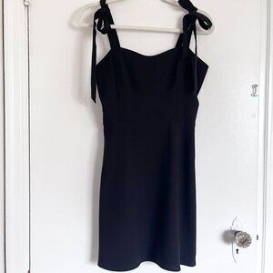 A cute and unique dress that is your classic LBD (Little Black Dress). With tie straps and a smocked bodice, this dress is great for dressing up or down. A high quality staple for the wardrobe.