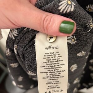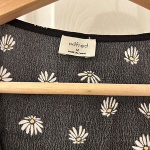 Long sleeve button down dress from Aritzia brand Wilfred. Daisy floral print. Midi length. Unlined.