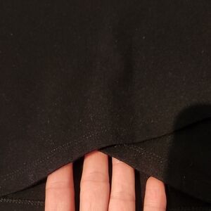 This is a pull-on, faux-wrap mini skirt with an asymmetric front. It's made from a stretch ponte fabric that hugs you in and keeps its shape all day.