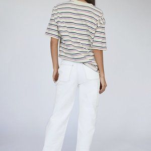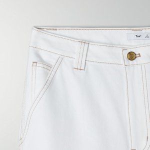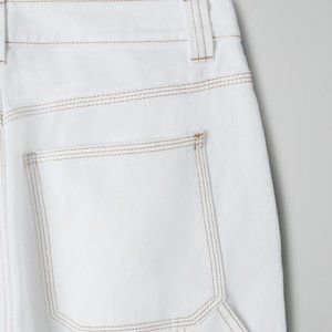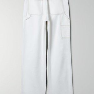 Not your typical white pants! Super cute TNA white straight legs pants from Aritzia. These pants have a hammer loop detail - super unique. High-rise and have a regular length. I’m 5.7” and usually wear 27 waist pants/jeans. These pants are true to fit on me. Once wear once