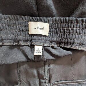 Size 8 Aritzia pleated crepe pants in black with elastic waisband at the back.