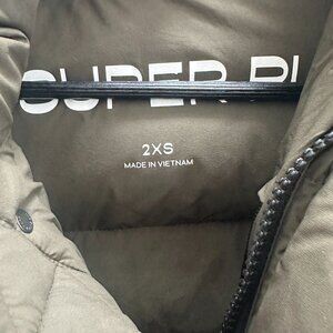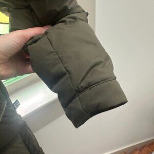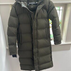 In very good condition, I would say excellent but I did wear it for 1 season. it is just too snug on me now. The colour i believe is Dark Olive. It is the long version.