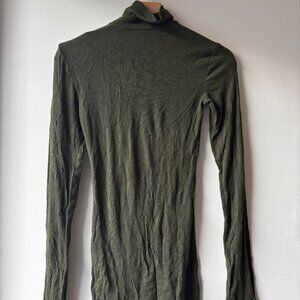 This is a longsleeve turtleneck with a tight fit. It's made from drapey ribbed fabric with a super-soft and cozy feel. The pinnacle of comfort. Color is not the same as the one on model, as displayed in first and last pictures. In very good condition.