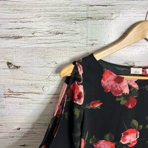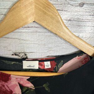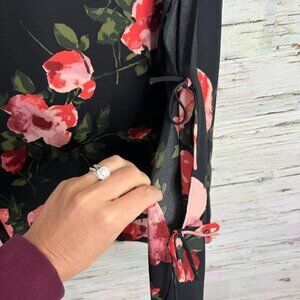 Aritzia wilfred black red floral blouse top tie up sleeves size small