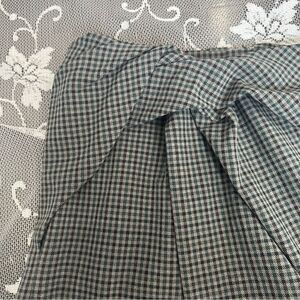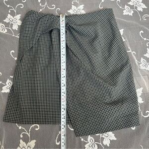 This is a mini skirt with an asymmetric front and faux twist detail. The check pattern is yarn dyed, which means it's woven right into the fabric, rather than being printed on top.
