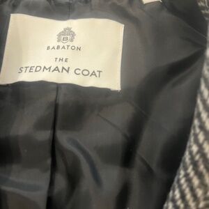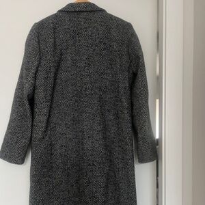 Black and White Houndstooth, single breasted with single button. Hits just below the knee.