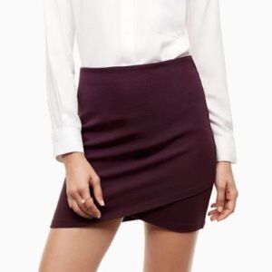 Aritzia Sunday Best Primrose skirt This is a pull-on, faux-wrap mini skirt with an asymmetric front. It's made from a stretch ponte fabric that hugs you in and keeps its shape all day. Small indentations on waistband from hanger but otherwise in great condition .