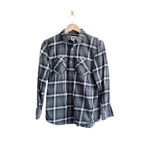 Aritzia TNA Women's Flannel Shirt Long Sleeved Plaid Green, Black, White Button Up Small. 100% Cotton - note that there is pilling all over the shirt. Please see photos for details and approx. measurements.