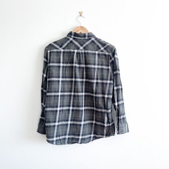 Aritzia TNA Women's Flannel Shirt Long Sleeved Plaid Green, Black, White Button Up Small. 100% Cotton - note that there is pilling all over the shirt. Please see photos for details and approx. measurements.