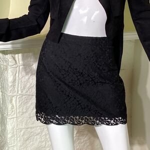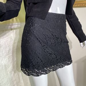Talula Etta black lace mini skirt. Side zipper closure, fully lined.