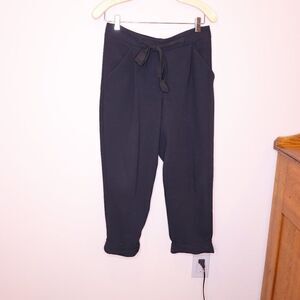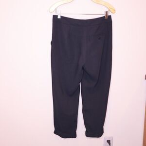 Aritzia Wilfred Allant pants in black. Act casual. These are casual trousers with a drawcord waist and rolled cuff hem. They’re made with a lightweight, drapey crepe fabric from Japan.