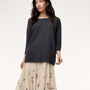 Indulge in luxury and comfort with this Aritzia Wilfred Blanchard ribbed sweater. Crafted from a silk, cotton, and cashmere blend, this soft and breathable knit features a relaxed fit, fine ribbed texture, and a versatile Charcoal Dark Grey hue—perfect for effortless layering.