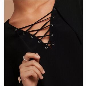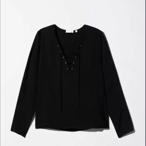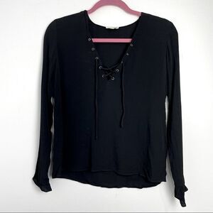 Lace up v neck long sleeve blouse , size XS but has a loose fit.