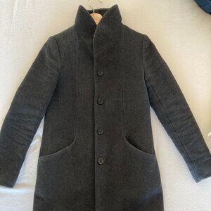Selling an Aritzia Cocoon Coat in dark grey from Wilfred. Made from a luxurious wool-cashmere blend, this coat has a sleek, fitted style that’s perfect for adding a refined touch to your winter wardrobe. It’s designed to keep you warm while maintaining a polished, streamlined look.